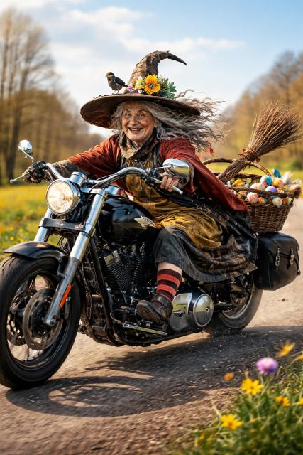 …eller flyger & flyger, det beror ju på hur man menar. Nutidens påskkärringar dånar väl mer vidare på sin Harley D tänker jag!
